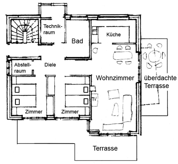 Ihnen stehen ci. 80 qm für 4 Personen zur Verfügung.